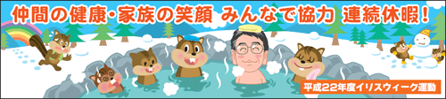 今年度は『平成22年4月1日〜平成23年3月31日』までの通年の運動をした上で、一般的に連続休暇を取得しやすく、酷暑期の安全対策としても効果が期待できる7月〜9月の期間を「イリスウィーク強化期間」と設定し、集中的にキャンペーンなどを実施することでメリハリをつけていくこととします。