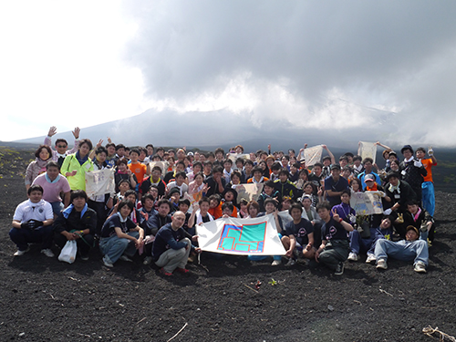 その後、社会貢献活動として終日フィールドワークを行い、午前中は「苗の移動」「苗の移植」「チップ作り」「苗置場の整備」の各グループに分かれ、手際よく作業を行った。 午後から、富士山の5合目に移動し、約100名でのバケツリレーによる苗木の移動や植樹等、精力的に作業をこなし約400本を植樹し、夜には昼間の作業の疲れを感じさせることなく、バーベキューやキャンプファイヤーを行い、参加者全員で楽しいひと時を過ごすことができた。